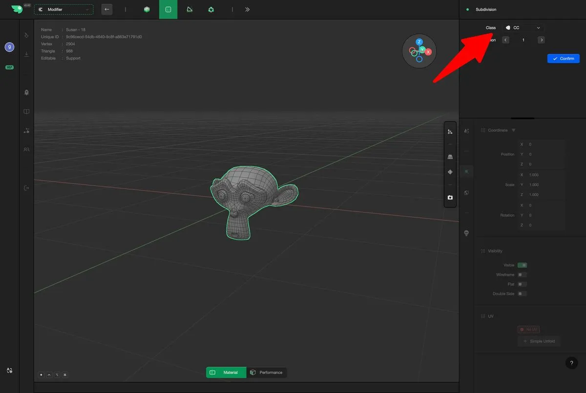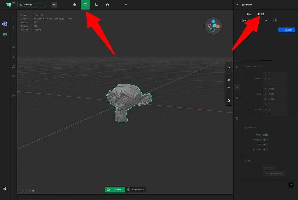 tips: The subdivision algorithm generates a large number of new quadrilateral faces across the model's surface, causing a rapid increase in polygon count. Excessive subdivision can introduce unnecessary computational overhead, degrading editing performance and responsiveness. Therefore, it is advisable to avoid excessive subdivisions when high detail is not required, in order to maintain a lightweight, efficient, and manageable model.