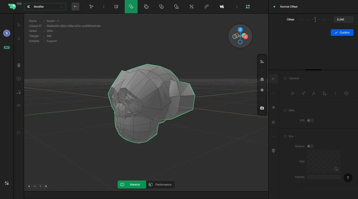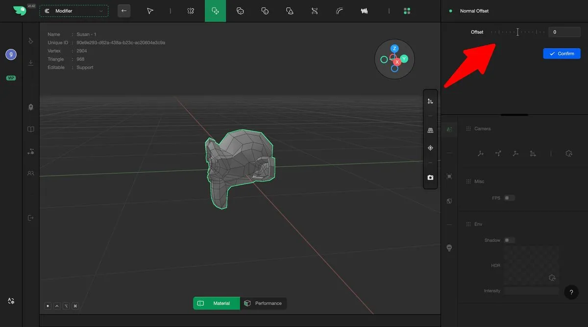 The Normal Offset modifier displaces the geometry along the normal direction of its vertices. Users can fine-tune the relevant parameters through the adjustment panel on the right.