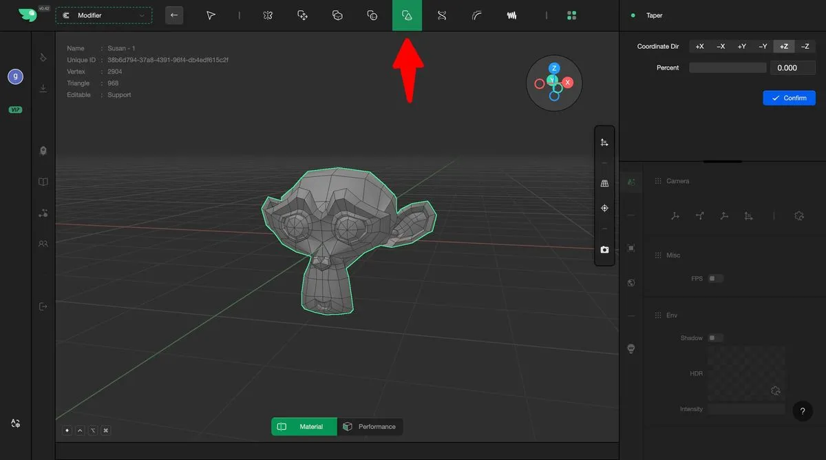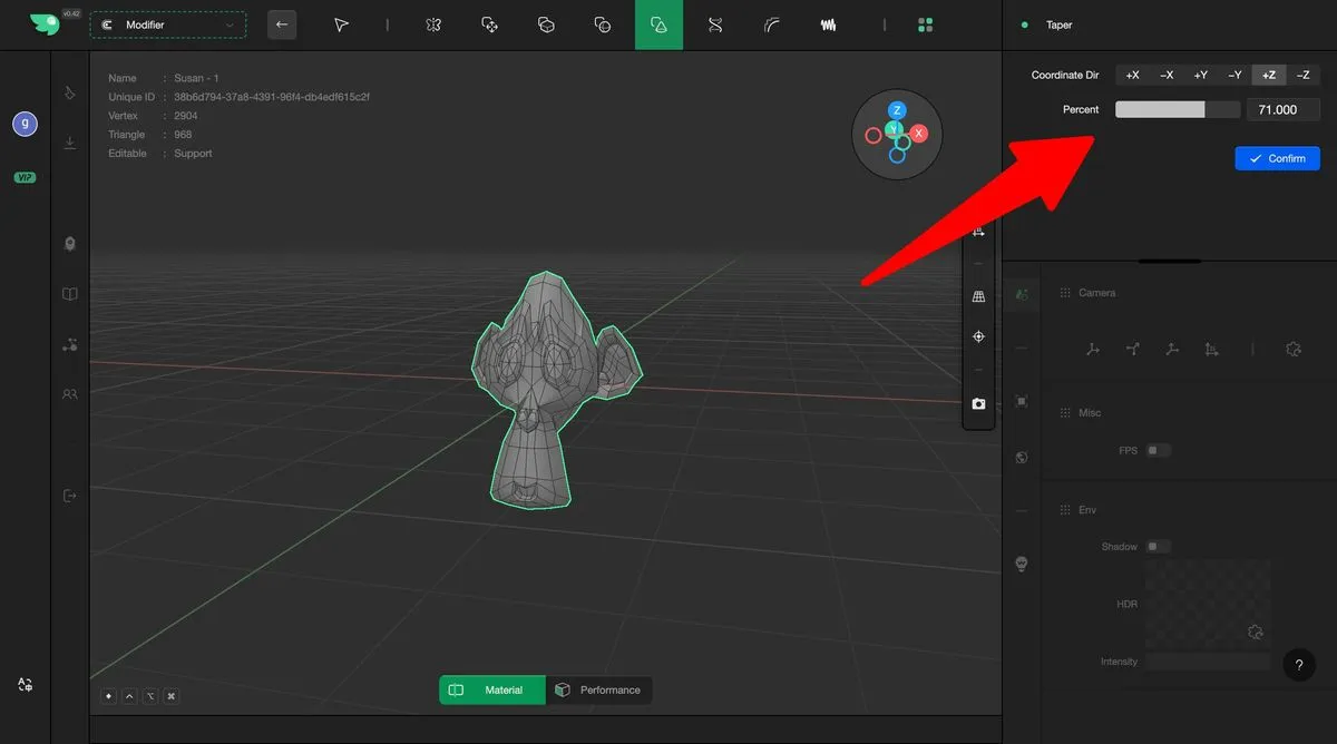 The Taper modifier scales the vertices of a geometry along a specified axis, gradually narrowing the shape to create a conical deformation effect.