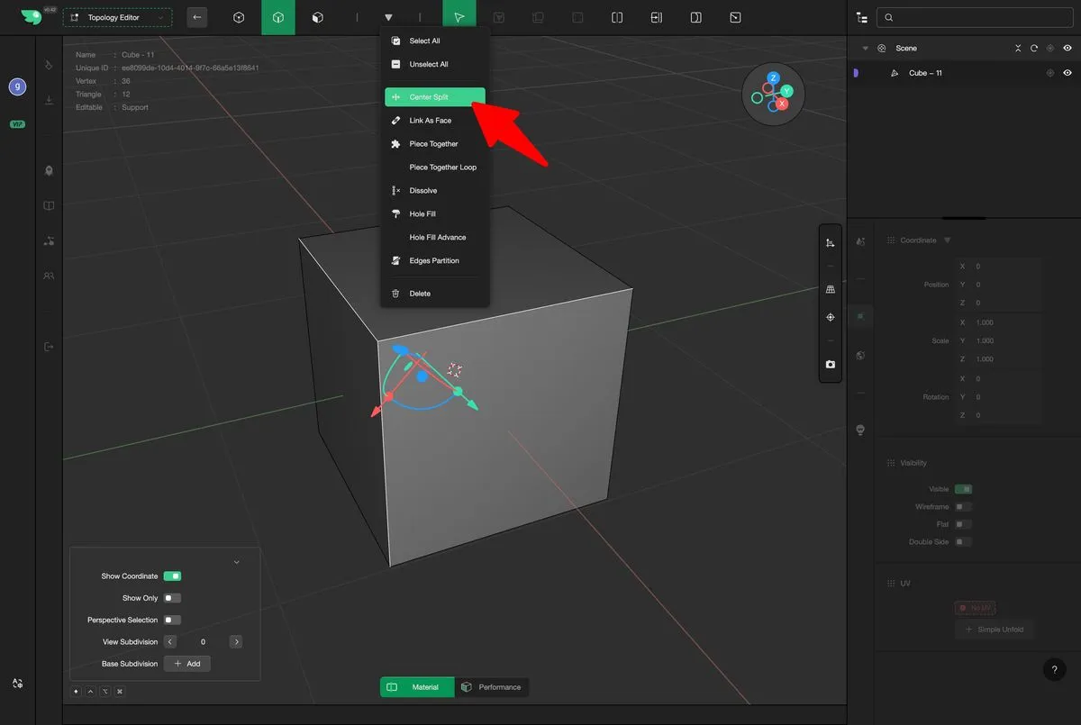 Select "Center Split" from the menu.
