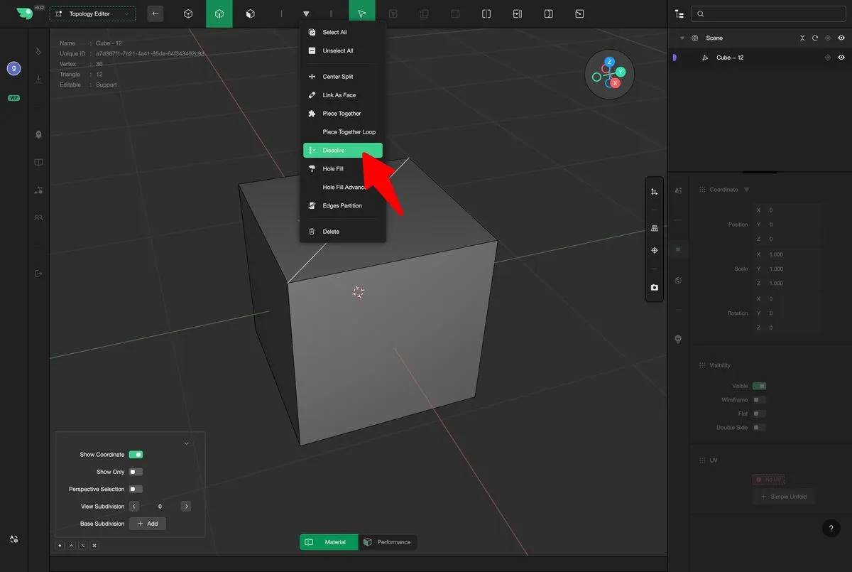Tips: Disslove operations that would result in abnormal mesh topology will be rejected.
