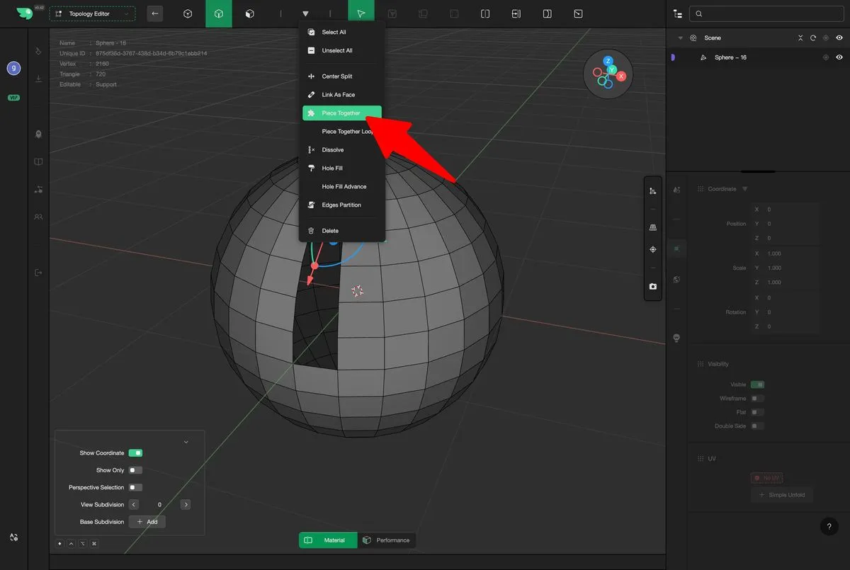For the selected boundary edge, a new face is created by combining it with its previous and next adjacent edges.
