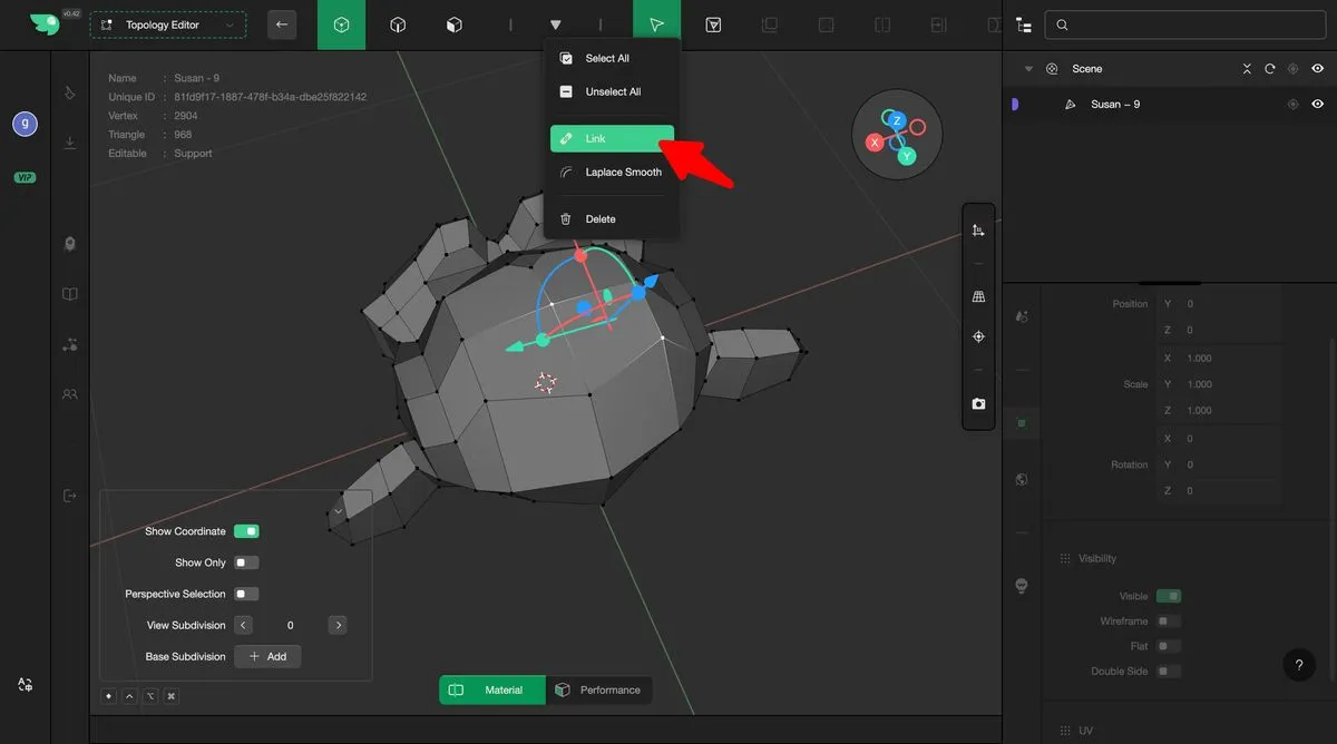Tips: Only two vertices can be selected at a time, and they must belong to the same face but not be adjacent.
